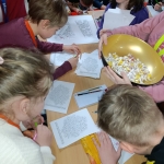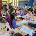 17 marca, w Dniu Świętego Patryka, uczniowie naszej szkoły mieli okazję poznać historię i zwyczaje związane z obchodami tego dnia w różnych miejscach na świecie. Podczas przerw mogli sprawdzić swoją zręczność, spostrzegawczość oraz tzw. LUCK (szczęście), biorąc udział w grach i zabawach na holu górnym. Niektórzy uczniowie, na chwilkę, stali się irlandzkimi skrzatami i mogli zrobić sobie pamiątkowe zdjęcie w zabawnym, zielonym kapeluszu. Dodatkowo, uczniowie lubiący kolorowe ilustracje, malowali obrazki przedstawiające motywy związane z Dniem Świętego Patryka, Irlandią i jej kulturą.