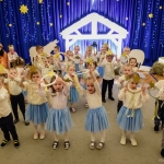 15 stycznia grupa maluszków oraz grupa starszaków zaprezentowały wspólne jasełka, na które zaproszeni zostali rodzice i dziadkowie naszych przedszkolaków. Wydarzenie to było dla dzieci źródłem ogromnej radości oraz niezapomnianych przeżyć. Wspólnie spędzony czas, ciepłe uśmiechy i życzliwe oklaski stworzyły wyjątkową, pełną wzruszeń atmosferę, która na długo pozostanie w pamięci zarówno dzieci, jak i zaproszonych gości.